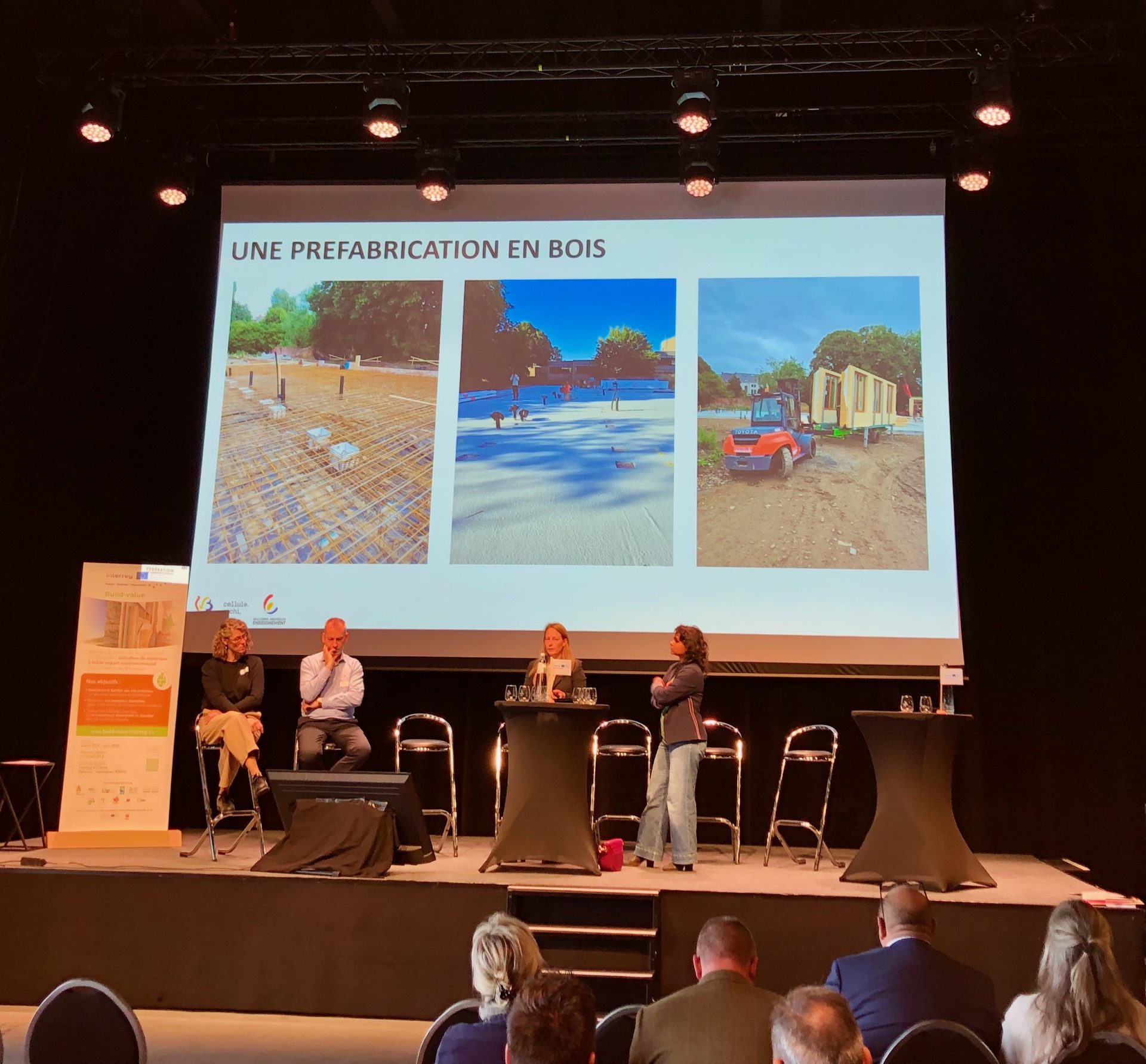 De uitdagingen in de sector en het Waalse kader voor duurzaam bouwen werden overlopen door Magali Deproost, Directie voor duurzame ontwikkeling van het Algemeen secretariaat van SPW en het project Build-value werd uitgelegd door Anne-Sophie Martin van de Cluster Eco-construction.